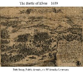 Eventually in January 1659, with a peace treaty likely to be signed with France, Spain determined to make a decisive move and sent a large force of more than 14,000 infantry and 3,500 cavalry to attack on the fortified town of Elvas. Needing to maintain its defensive forces in the north of the country against possible attack there, the Portuguese could only muster 8,000 infantry and 2,500 cavalry, but their superior tactics and, perhaps, greater motivation led to a Spanish defeat.